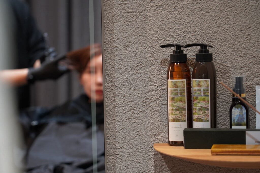 モネは五感すべてで癒される美容室として設計されており、白髪染めだけでなく、空間・香り・施術の丁寧さが評価されています。